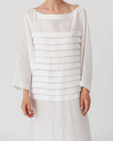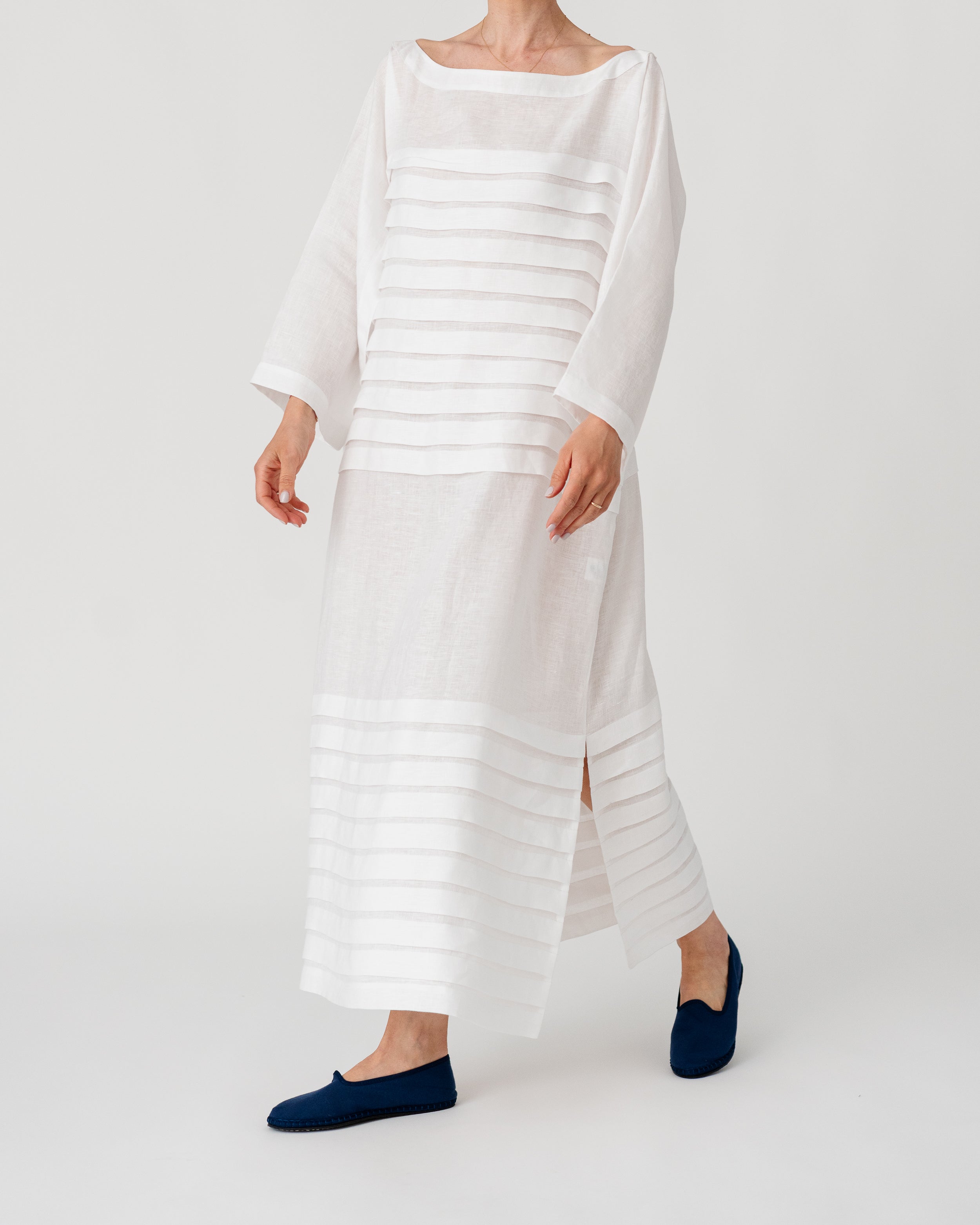 Boat neckline and wide sleeves creating a relaxed, refined silhouette