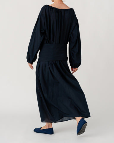 Gathered neckline with delicate ties and voluminous sleeves