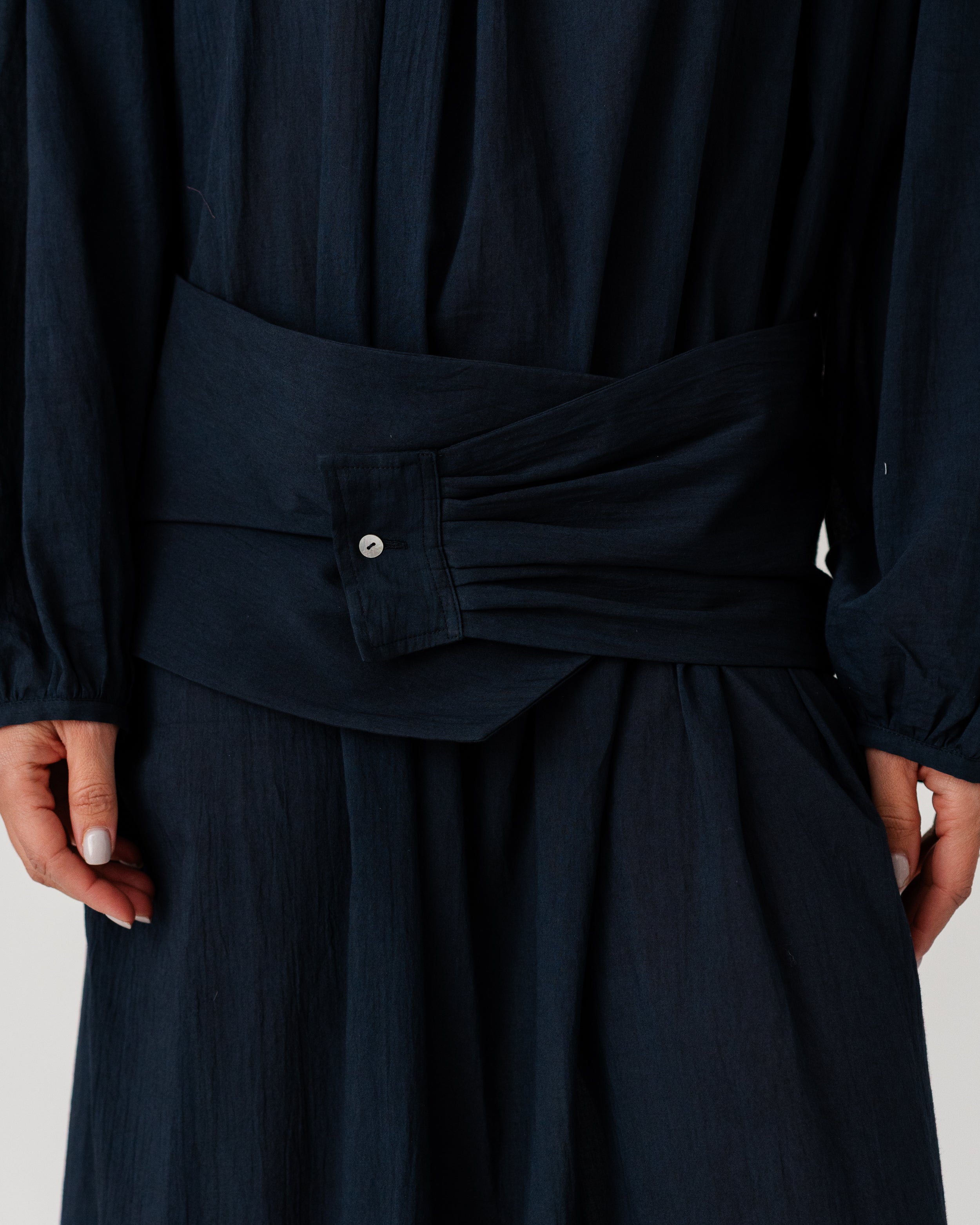 With a wide wrap-style belt for an elegant, feminine silhouette