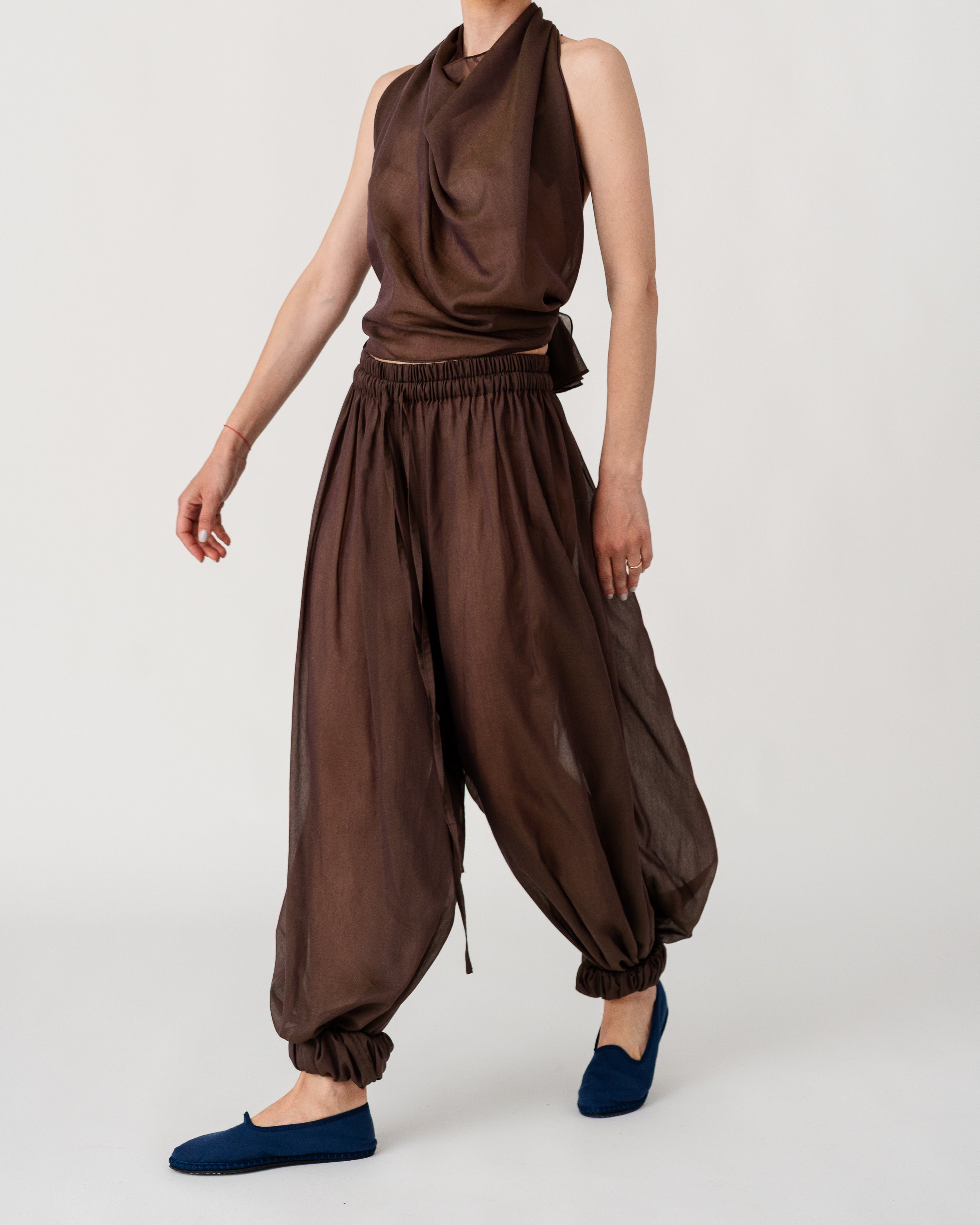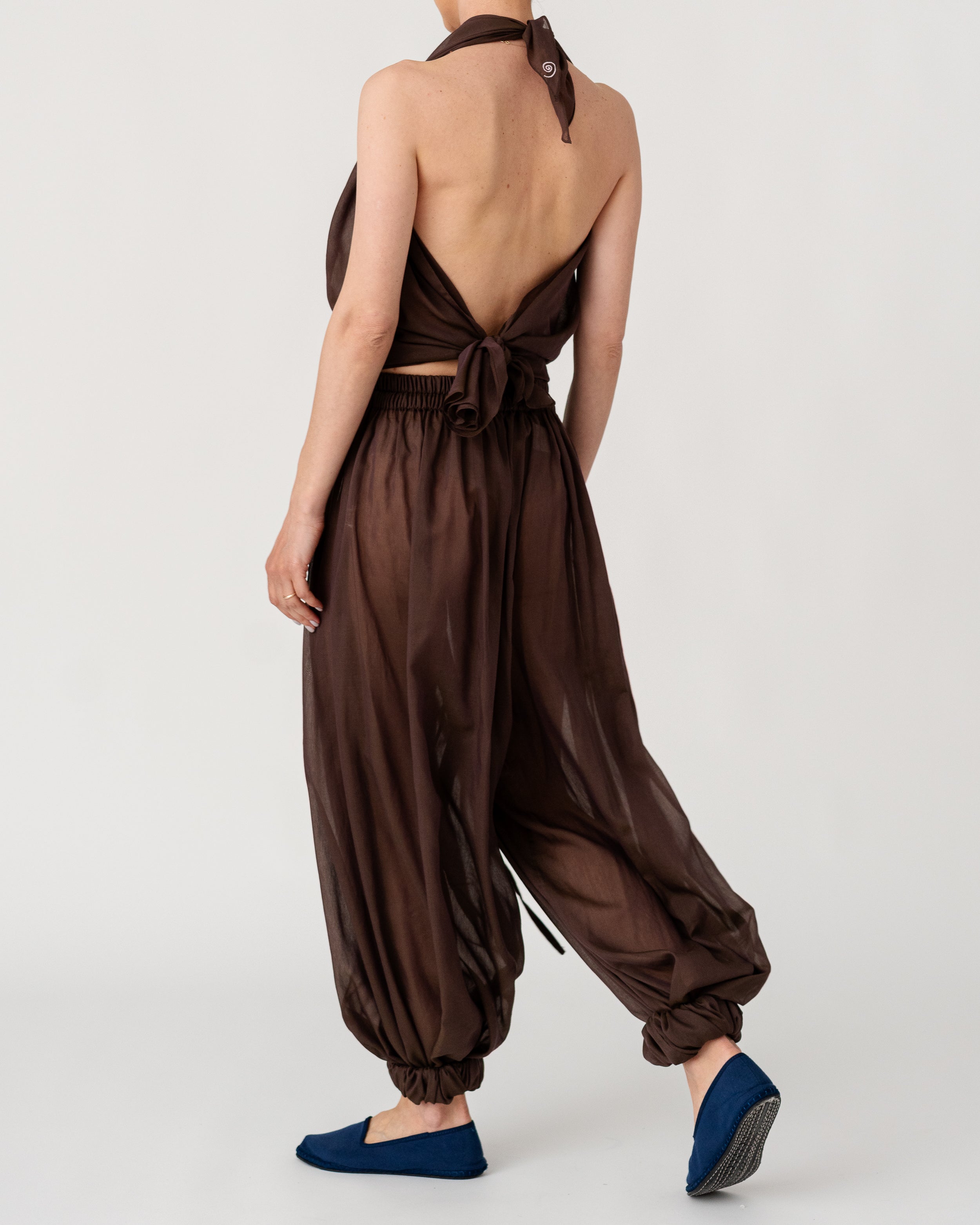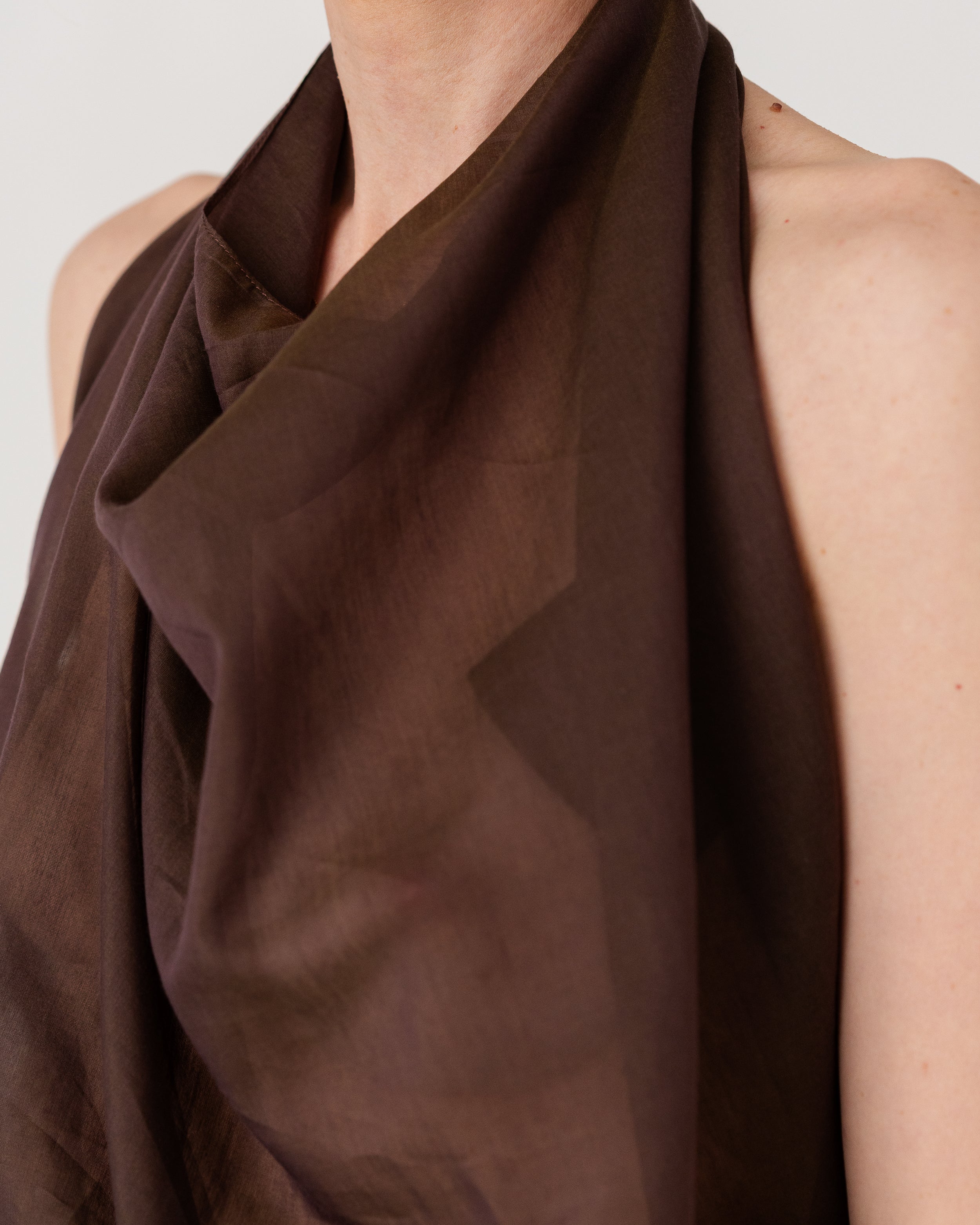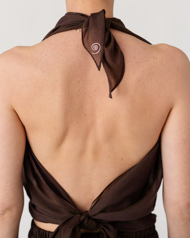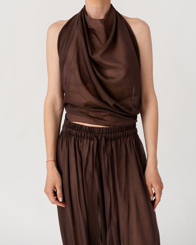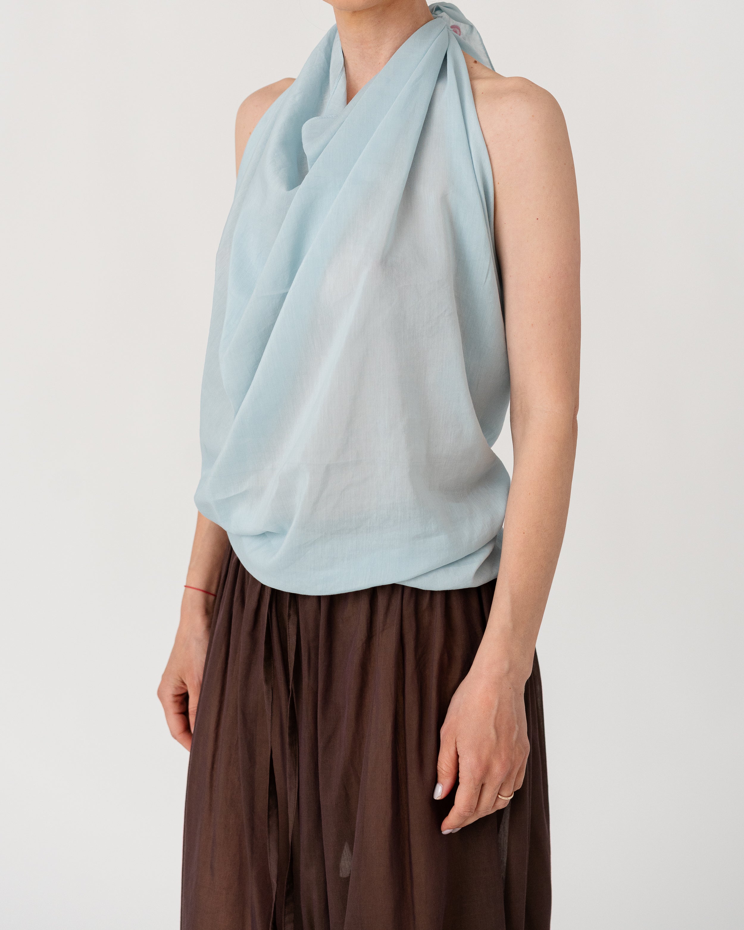 Scarf-inspired halter top crafted from airy, fluid fabric ( 30% silk, 70% cotton)