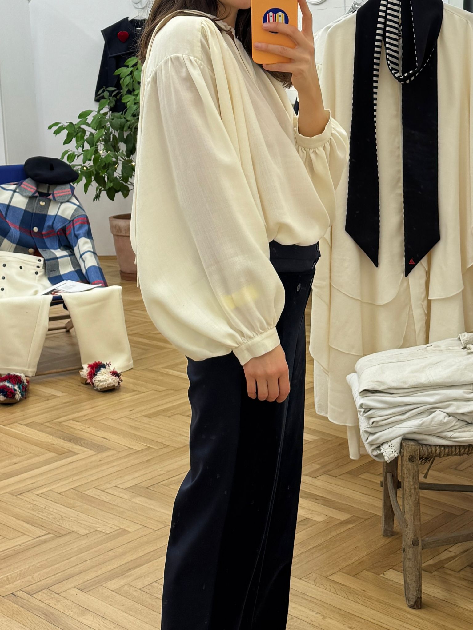 • Long sleeved flowy shirt