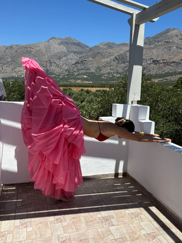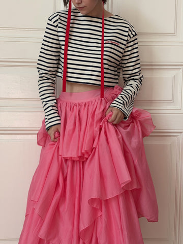 - Crafted from a precious creamy pink cotton organza fabric (Composition: 50% silk and 50% Cotton)